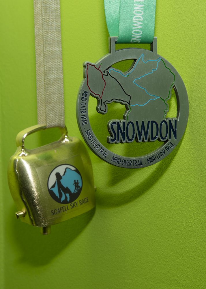 One final climb though and that was it, all that remained was a gentle run down into Ambleside and a final sprint (not really) up the university steps to the finish line, a round of applause, a few goodies and a very welcome hose down. No medal and I like a bit of bling but I’d bought a goat bell for Fraser to support me with so I reclaimed that and called it a medal. It doesn’t say “finisher” on it, but nor does it need to … I’ll never forget I finished this one.